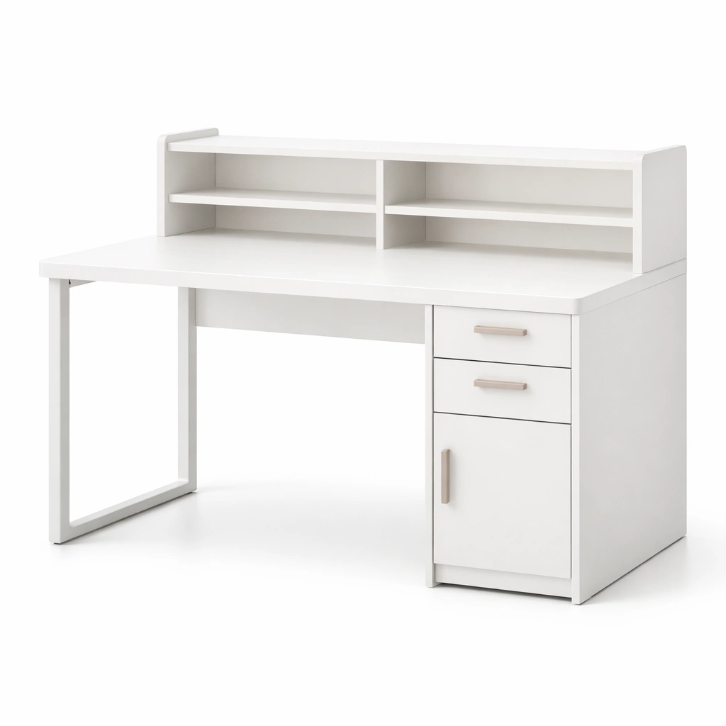 Dieser Schreibtisch besteht aus widerstandsfähigem MDF mit weißer Lackierung.